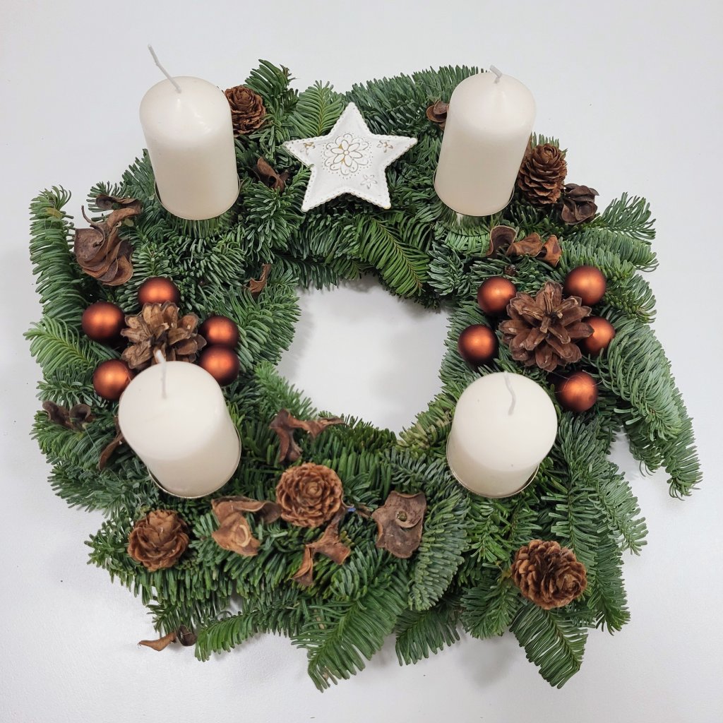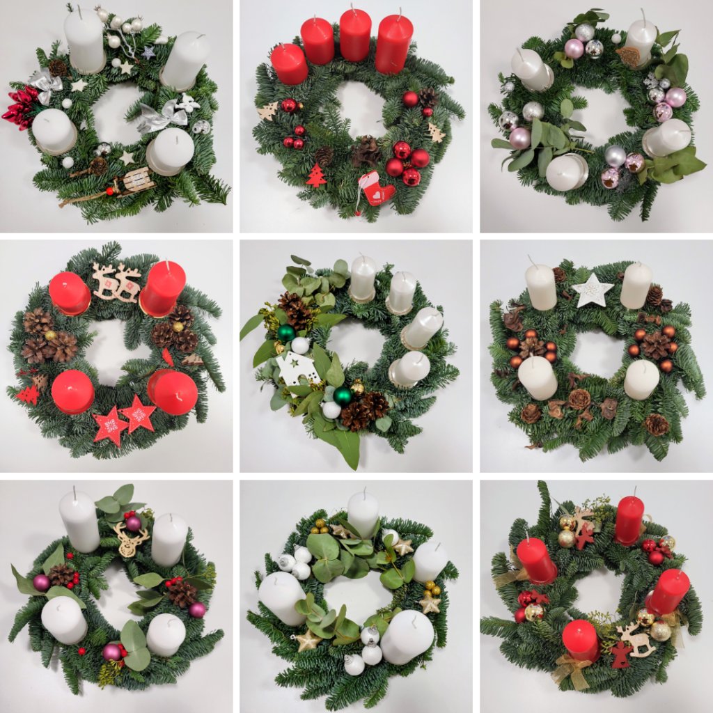 Protože je každý věnec originál, vybíráte si osobně na místě – kdo přijde dřív, má větší výběr.