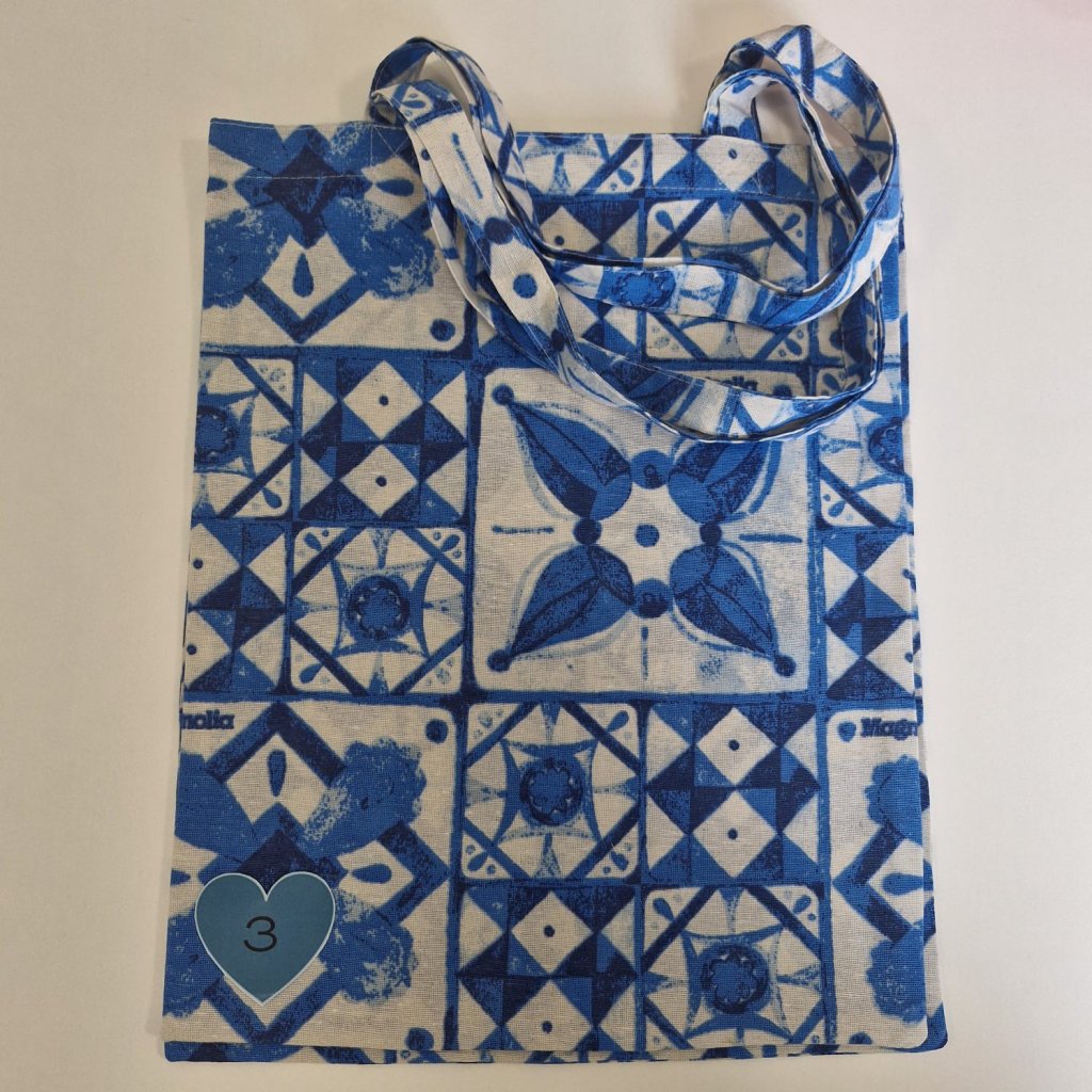 Krásná, ručně šitá látková taška o rozměrech cca 40 × 31 cm – ideální na nákup, knížky nebo každodenní radosti.