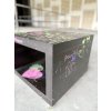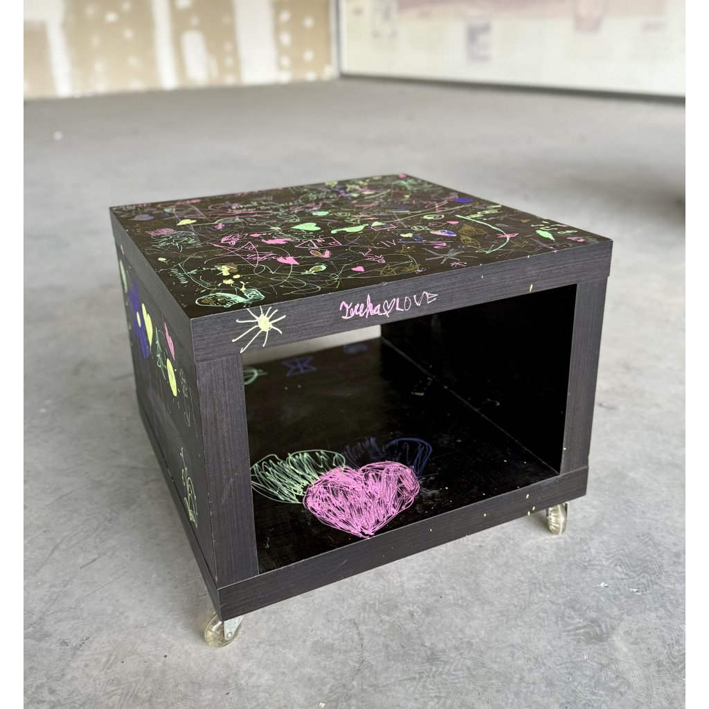 Originální a hravý! Tento černý stolek není jen stolek – je to malé umělecké dílo, na kterém děti rozvinuly svou fantazii. Každá skvrnka a tah štětcem je součástí jeho jedinečného kouzla.