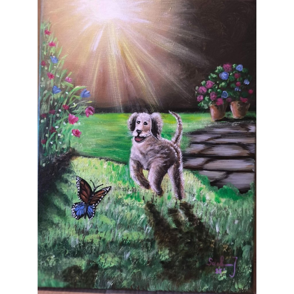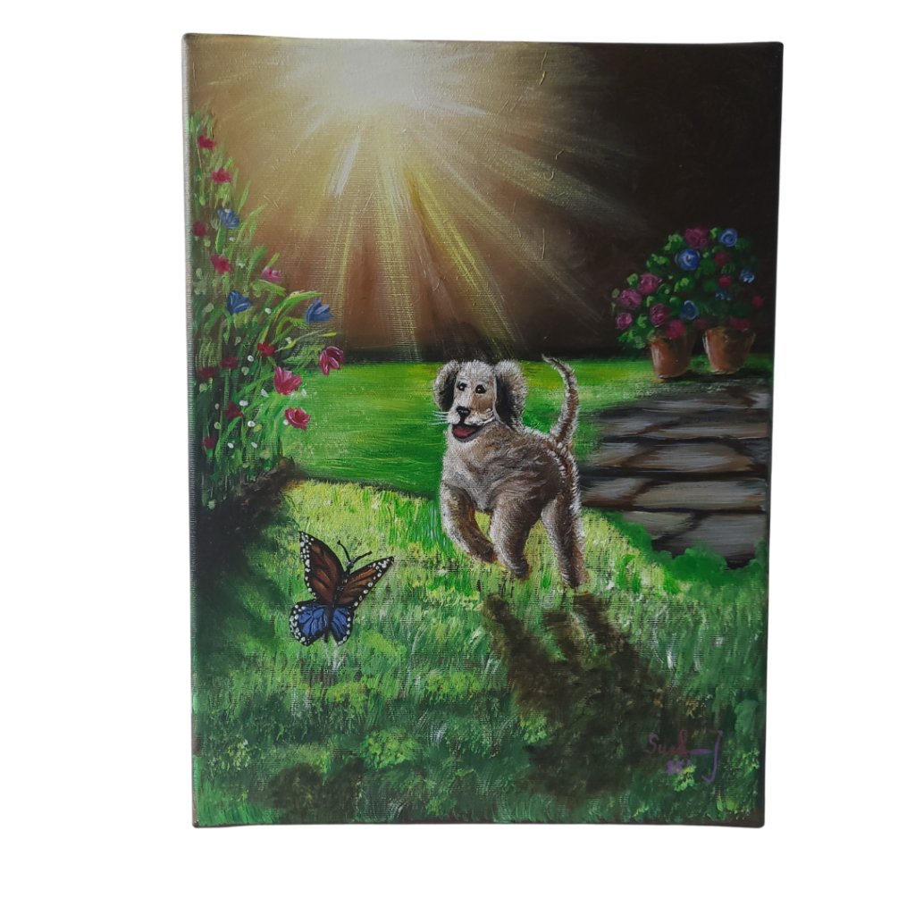 Tento ručně malovaný obraz (akryl na plátně, 30 × 40 cm) je dílem paní Jarušky, která se k malování dostala v roce 2019. Malování pro ni bylo dlouho snem — a po absolvování malířských kurzů se konečně odhodlala tvořit. Dnes maluje všechno, co ji osloví, a někdy se těší na malování tak moc, že kvůli tomu ani nemůže spát.