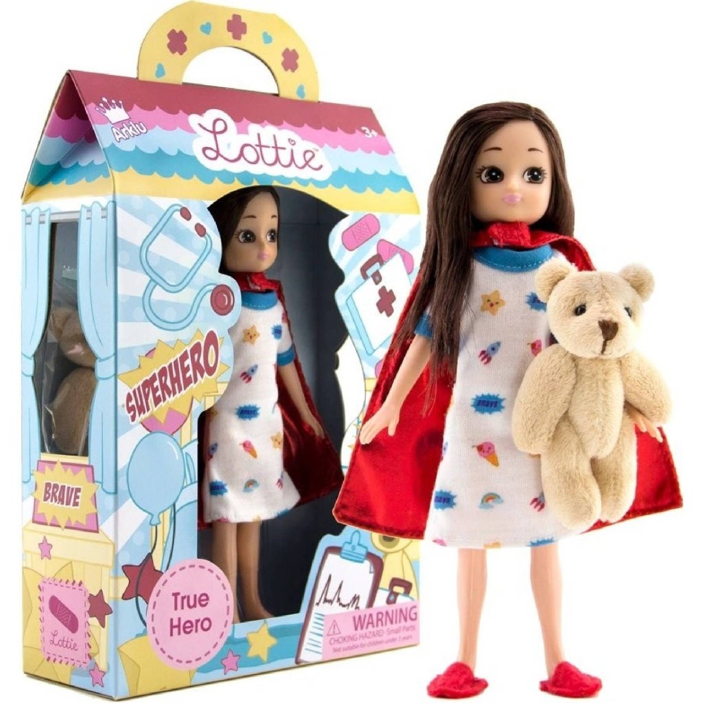 Panenka je vyrobena z kvalitního vinylu, má realistické proporce 9letého dítěte a doprovází ji plyšový medvěd. Díky barevnému „super cool“ plášti se nebojí nemocnice a děti se do ní mohou snadno vžít. Lottie podporuje představivou hru, odvahu a sebevědomí – učí děti, že mohou být tím, kým chtějí být, a že i malé hrdinské činy mají velký význam.