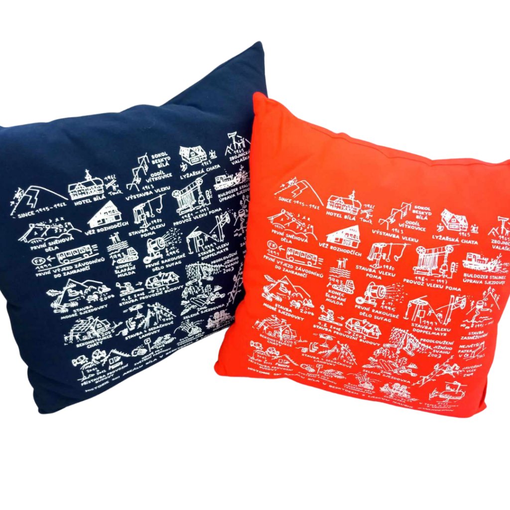 Ne jen ty největší fanoušky areálu by mohl potěšit tento polštářek, který má na sobě pěkně a stručně vykreslenou historii areálu a jak vše postupně vznikalo.