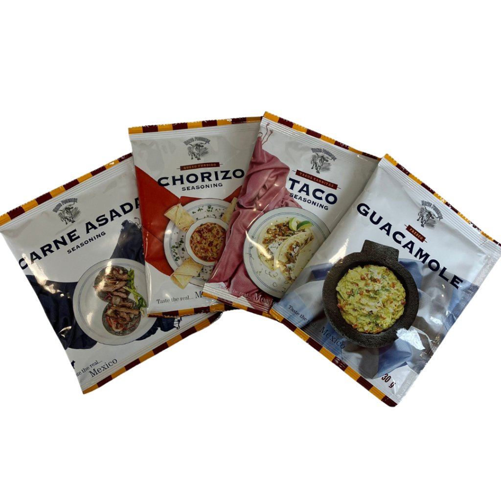 Voňavá sada čtyř kořenících směsí pro mexickou kuchyni. Ideální k masu, tortillám, zelenině i domácím salsám.