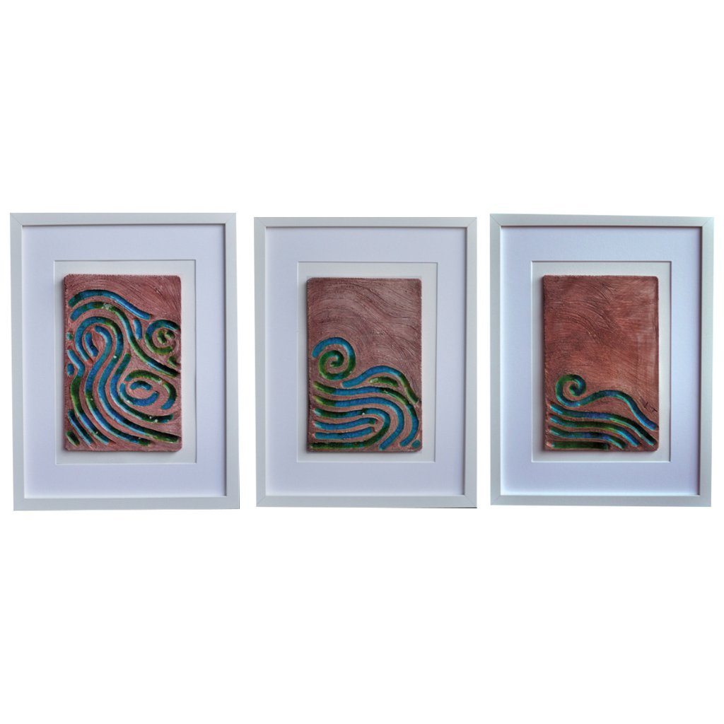 Sada tří keramických kachlí. Rozměr jednoho je 32,5 x 42,5 cm.