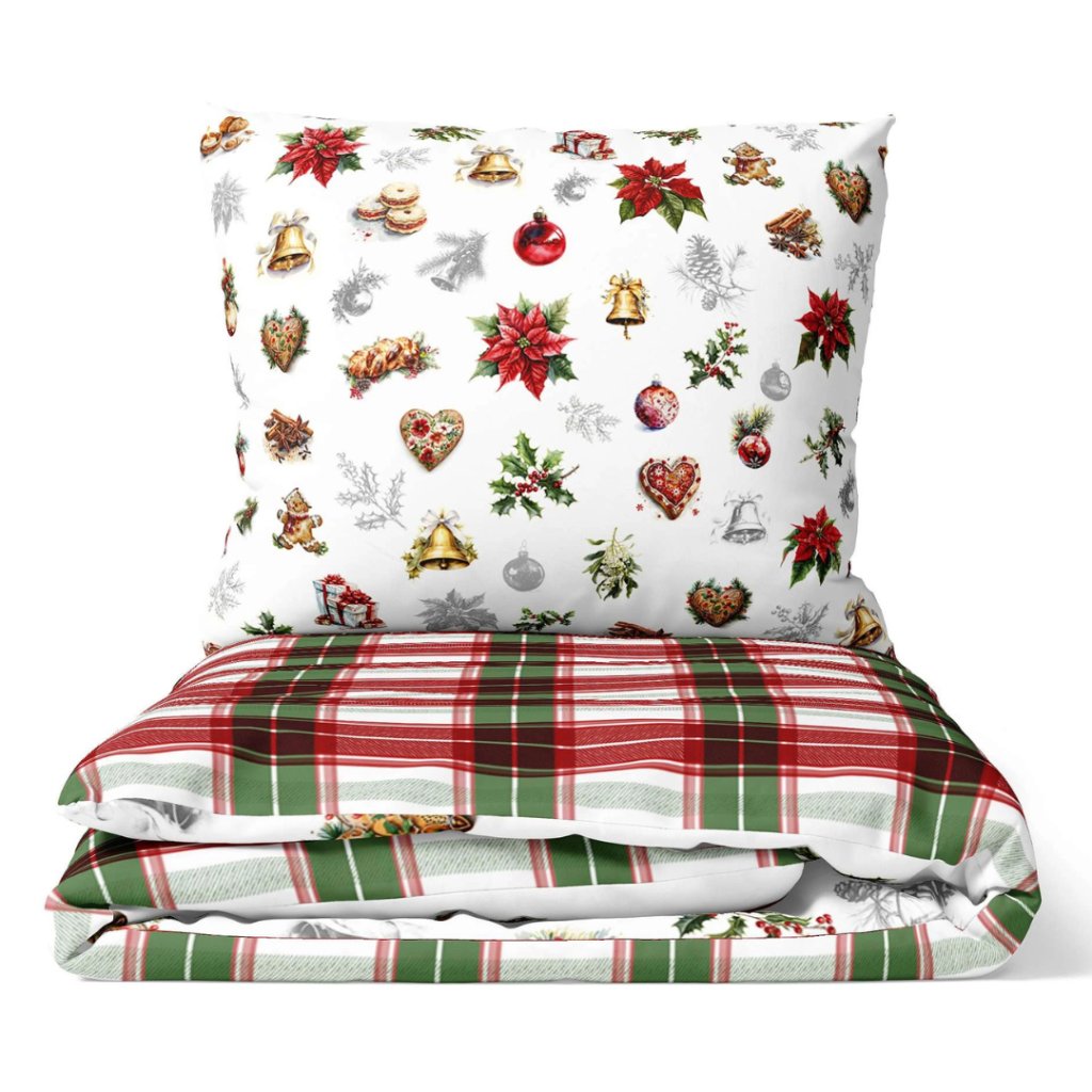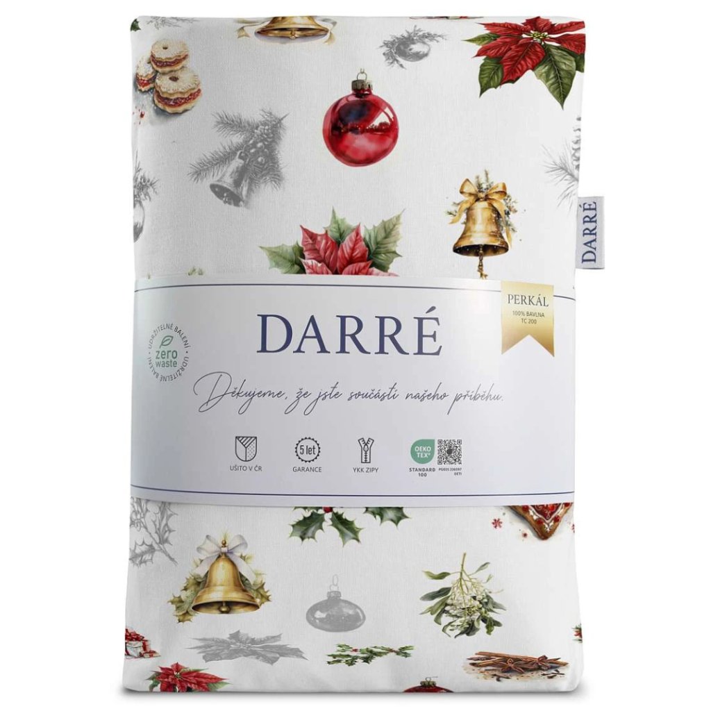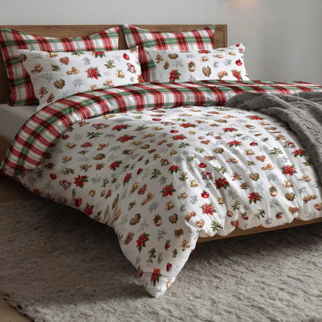 Toto povlečení je malý kousek vánoční pohody přímo od české firmy Darré, specialisty na kvalitní bytový textil. Vyrobeno z lehkého, pevného a jemného perkálu (100 % bavlna), nabízí výjimečný komfort a dlouhou životnost. Povlak na přikrývku má z jedné strany zeleno-červený kostkovaný vzor, z druhé pak rozmanité sváteční ilustrace – cesmína, zvonečky, srdíčka, hvězdy a další tradiční motivy, které dokonale evokují kouzlo Vánoc.