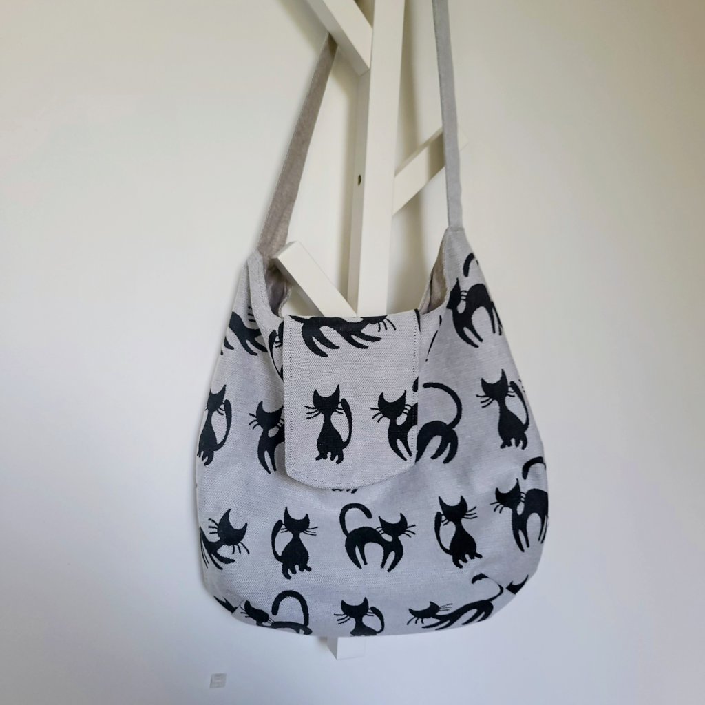 Tuto originální látkovou tašku ušily paní Marcelka a Janička s láskou a péčí. Má rozměry cca 32 × 35 cm a zapíná se na praktický cvoček. Je skvělá pro všechny, kdo milují kočky a chtějí mít své nezbytnosti po ruce stylově a vesele.