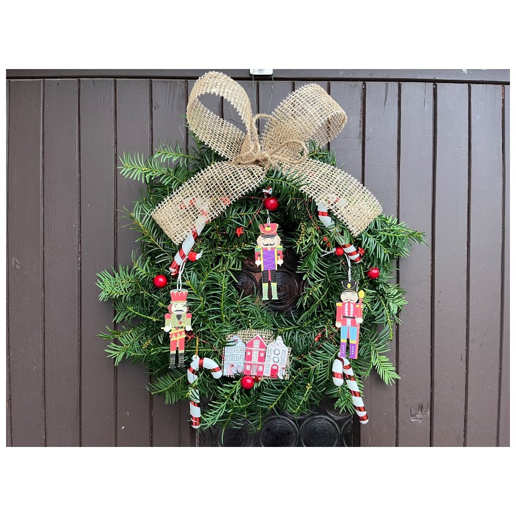 Tento krásný věnec vznikl z pečlivě vybraného tisu, který je připevněn k slaměnému základu jen pomocí drátků – žádné lepidlo, jen čistá řemeslná práce. Díky oku na zavěšení ho snadno pověsíte na dveře nebo do interiéru a rozjasníte tak každý kout vašeho domova. Věnec vytvořila paní Pavlínka s láskou a péčí, takže každý kus je jedinečný a nese kousek zimní magie. Děkujeme paní Pavlínce za její krásný dar, který potěší mnoho lidí.